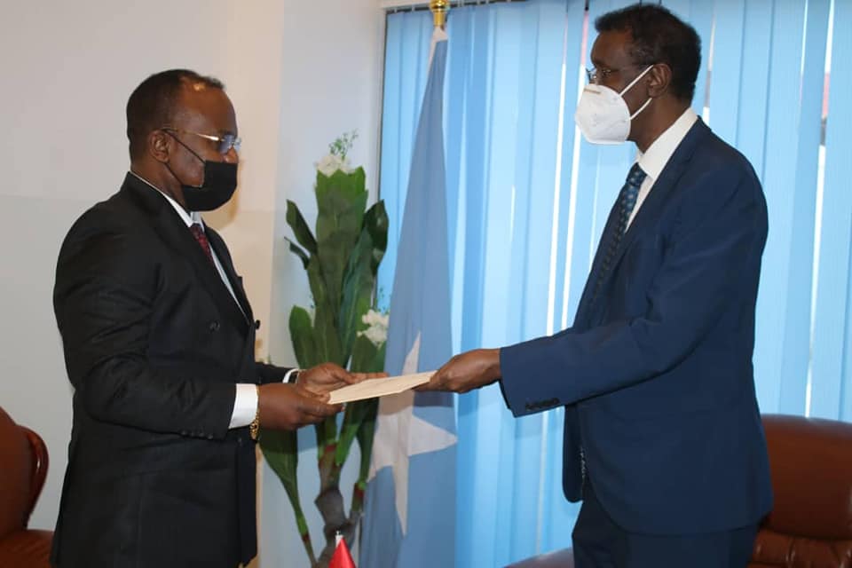 Muqdisho (Lamaane.net) - Xoghayaha Joogtada Wasaaradda Arrimaha Dibadda iyo Iskaashiga Caalamiga, Mudane Danjire Maxamed Cali-Nuur Xaaji, ayaa maanta oo Talaado ah , nuqul ka mid ah warqadaha aqoonsiga danjirannimo uga guddoomay Caasimadda Muqdisho Safiirka Jamhuuriyadda Angola u qaabilsan Jamhuuriyadda Federaalka Soomaaliya, Mudane Sianga Kivuila Samuel Abilio.