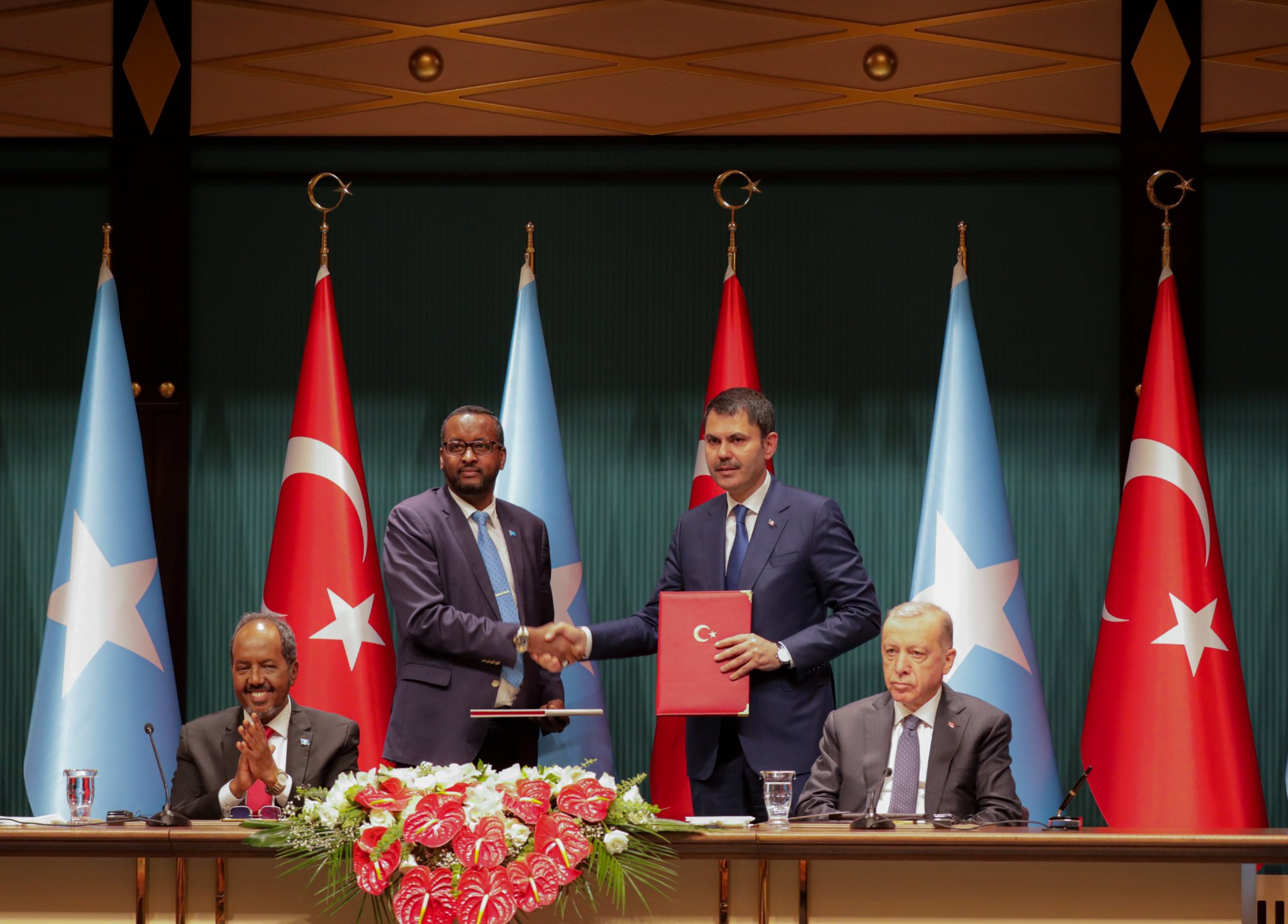 Ankara (so.diplomat.so) - Siihayaha Xilka Wasiirka Arrimaha Dibadda ahna Wasiiru dowlaha Arrimaha Dibadda iyo Iskaashiga Caalamiga, Mudane Balal Maxamed Cusmaan, ayaa maanta Magaalada Ankara kula saxiixday heshiis taageero deeqo gaar ah Wasiirka Deegaanka, Magaalaynta iyo Isbeddelka Cimilada, Mudane Murat Kurum, iyadoo ay goobjoog ka ahaayeen Madaxweynayaasha labada dal ee walaalaha ah, Mudane Xasan Sheekh Maxamuud, iyo Mudane Recep Tayyip Erdoğan.