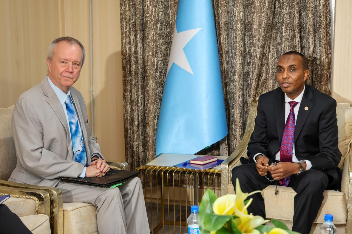 Muqdisho (Lamaane.net) - Ra'iisul Wasaaraha Xukuumadda Federalka ee Soomaaliya, Mudane Xamsa Cabdi Barre, ayaa maanta qaabilay Danjiraha Mareykanka ee Soomaaliya, Larry Andre oo ay ka wada hadleen xoojin xiriirka iyo wada shaqeynta u dhaxeysa labada dal ee Soomaaliya iyo Mareykanka.