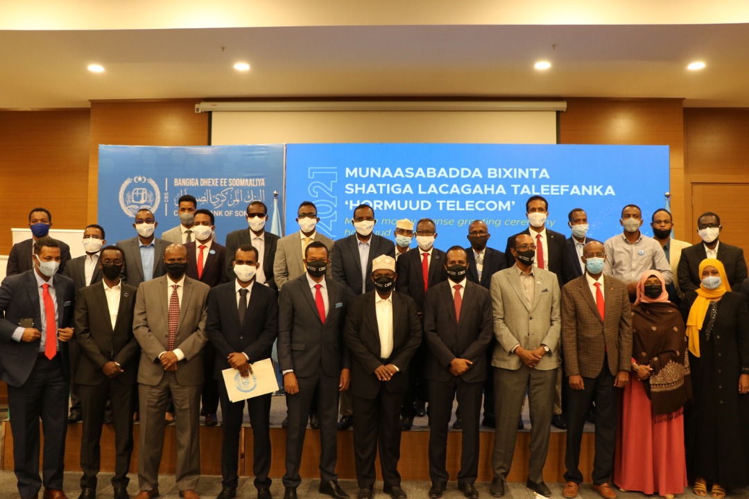 Guddoomiyaha Bankiga Dhexe ee Soomaaliya Cabdiraxmaan Maxamed Cabdullaahi, ayaa madasha ka sheegay in shirkadda Hormuud ay tahay shirkaddii ugu horraysay ee hesha aqoonsigaan caalamiga ah ee hannaanka maaliyadeed ee dalka.