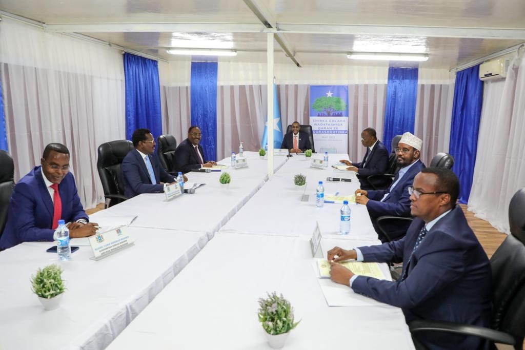 Muqdisho (Lamaane.net) - Ra'iisul Wasaaraha Xukuumadda Federaalka Soomaaliya Mudane Maxamed Xuseen Rooble ayaa maanta shir-guddoomiyay Furitaanka Shirka Wadatashiga Qaran ee doorashooyinka oo looga arrinsanayo sii ambaqaadidda heshiiskii 17-ka Sebtembar ee ay ansixiyeen Baarlamaanka Federaalka Soomaaliya.
